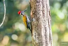 三趾啄木鸟,是啄木鸟科、啄木鸟属的小型鸟类,体长20-23厘米,雄鸟头顶金黄色,雌鸟黑色而具白色斑点。眼至耳覆羽黑色,眼后有一条白色纵纹,颊纹白色,颚纹黑色,甚为醒目。枕和后颈黑色,…全部>>