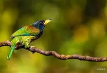 黑眉拟啄木鸟,为须䴕科、拟啄木鸟属的小型鸟类,体长20-25厘米,外形和金喉拟啄木鸟非常相似,但具粗著的黑色眉纹,头侧和耳覆羽以及下喉蓝色而不为银灰色,前颈两侧各有一块鲜红色斑。全部>>