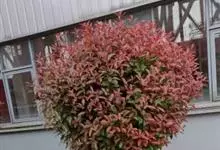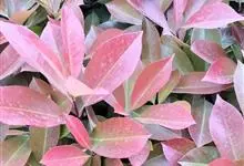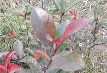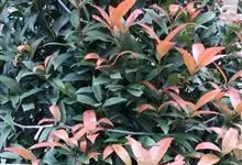 红叶石楠 是蔷薇科,石楠属杂交种,为常绿小乔木或灌木,乔木高可达5米、灌木高可达2米。叶片革质,长圆形至倒卵状、披针形,叶端渐尖,叶基楔形,叶缘有带腺的锯齿,花多而密,复伞房花序,花白色,梨果黄红色,…全部>>
