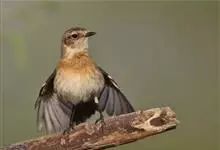 黑喉石鵖,雀形目鹟科石鵖属小型鸣禽,俗名谷尾鸟、黑喉石。其体色为黑褐色。雄鸟头部、背部、两翼及尾黑色,颈侧及翼上具白斑,胸部和腹侧红棕色,腰及尾下覆羽白色。雌鸟体色为褐色,上体具深色纵纹,胸部染棕色,…全部>>