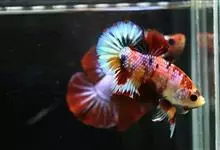 孔雀花鳉 ,俗名孔雀鱼,也称为凤尾鱼、彩虹花鳉、虹鳉、古比鱼等,是花鳉科花鳉属的一种热带鱼,雌雄鱼的体型和色彩差别较大,成年雄鱼身体瘦小,体长3-4厘米,体色绚烂多彩、体型优美;成年雌鱼体长5厘米…全部>>
