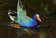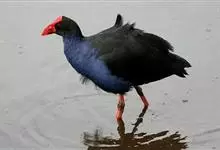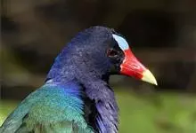 紫水鸡是秧鸡科紫水鸡属鸟类。下辖12个亚种,中国为云南亚种。体长40-45厘米,体羽大多为紫蓝色,翅表面和胸蓝绿色;尾下覆羽白色;嘴红色,粗大并与橙红色额甲相接;额甲宽阔,后缘呈截平状;雌雄鸟相似,…全部>>