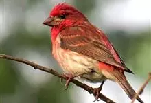 酒红朱雀小型鸟类,体长13~15厘米。雄鸟通体深红色,头部深朱红或棕红色,下背和腰玫瑰红色,眉纹粉红色而具丝绢光泽。两翅和尾黑褐或灰褐色、具暗红色狭缘,内侧两枚三级飞羽具淡粉红色先端。…全部>>