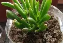 筒叶花月,是景天科青锁龙属的多年生草本植物。植株多分株,灌木状,茎较粗壮,圆柱形,表皮灰褐色;叶片肉质,互生,呈圆筒状,簇生于茎或分枝顶端,叶端呈斜截形,截面为椭圆形;花呈星状,淡白色;花期秋季。…全部>>