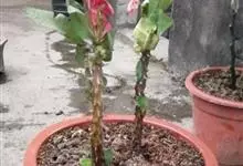 铁海棠为大戟科大戟属蔓生灌木植物;茎多分枝,具纵棱,呈旋转状;叶互生,通常集中于嫩枝上;每个花序基部边缘具微小的红色尖头;苞叶先端圆且具小尖头,无柄,上面鲜红色,下面淡红色;苞片丝状;子房光滑无毛,…全部>>