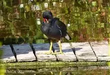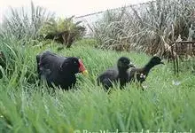 黑水鸡:是鹤形目、秧鸡科的鸟类,共有12个亚种。中型涉禽,体长24-35厘米。嘴长度适中,鼻孔狭长;头具额甲,后缘圆钝;嘴和额甲色彩鲜艳。翅圆形,第2枚初级飞羽最长,或第2枚和第3枚初级飞羽等长,…全部>>
