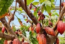 可可是锦葵科、可可属常绿乔木,树冠繁茂,树皮厚,暗灰褐色;嫩枝褐色,被短柔毛;花五瓣,淡黄色,稍长于花萼;叶具短柄,卵状长椭圆形至倒卵状长椭圆形;核果椭圆形或长椭圆形初为淡绿色,后变为深黄色或近于红色,…全部>>