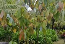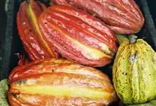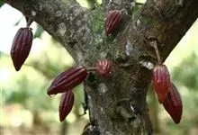 可可是锦葵科、可可属常绿乔木,树冠繁茂,树皮厚,暗灰褐色;嫩枝褐色,被短柔毛;花五瓣,淡黄色,稍长于花萼;叶具短柄,卵状长椭圆形至倒卵状长椭圆形;核果椭圆形或长椭圆形初为淡绿色,后变为深黄色或近于红色,…全部>>