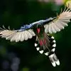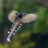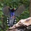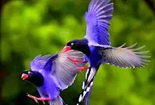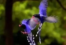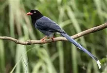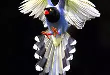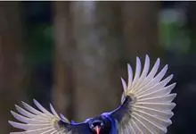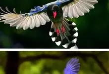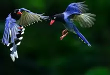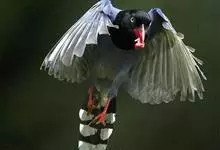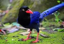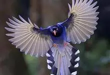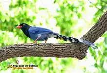 台湾蓝鹊:体长64至65厘米,翼展18至21厘米,尾长约40厘米,尾羽长占了总体长的三分之二。头、脸、颈、喉、胸都是黑色,黄色的眼珠包围黑色的瞳孔,鲜红色的鸟喙、双脚,…全部>>