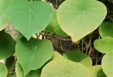 千金藤 Miers),防己科千金藤属多年生草质或近木质缠绕藤本植物。根圆柱状;皮暗褐色;小枝细弱而韧,老茎木质化圆柱形;叶阔卵形草质或纸质;花序伞状腋生,花小黄绿色;核果球形红色;花期5-6月,…全部>>