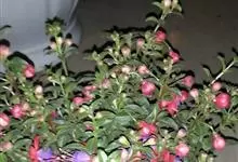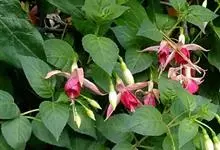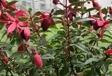 倒挂金钟是柳叶菜科倒挂金钟属亚灌木植物。茎直立,多分枝;幼枝带红色,被短柔毛与腺毛,老时渐无毛;叶对生,卵形或窄卵形,脉常带红色;常带红色,被短柔毛与腺毛;花筒红色,筒状钟形,…全部>>