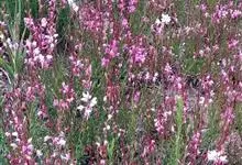 山桃草是柳叶菜科、山桃草属植物。多年生宿根草本。高60-100厘米,叶无柄,椭圆状披针形或倒披针形,花期晚春至初秋;多花型,花蕾白色略带粉红,初花白色,谢花时浅粉红。花紫红色,成密生的穗状花序,…全部>>