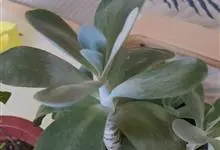 唐印为景天科伽蓝菜属的多年生肉质草本植物。植株中型,株高50厘米,宽20厘米,多分枝;叶片肉质,对生,卵形,全缘,先端钝圆,叶片淡绿色至灰绿色,表面被有厚厚的白粉,光照充足时,叶缘呈红色;圆锥花序,…全部>>