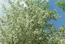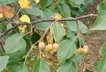 山荆子 Borkh.):为落叶乔木,树高可达4-5米,最高可达10米以上。灰褐色,光滑,不易开裂。新梢黄褐色,无毛。嫩梢绿色微带红褐。叶片椭圆形,先端渐尖,基部楔形,叶缘锯齿细锐。伞形总状花序。花白色,…全部>>