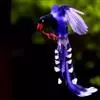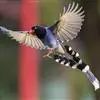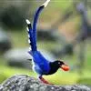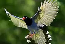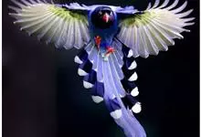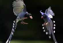 台湾蓝鹊:体长64至65厘米,翼展18至21厘米,尾长约40厘米,尾羽长占了总体长的三分之二。头、脸、颈、喉、胸都是黑色,黄色的眼珠包围黑色的瞳孔,鲜红色的鸟喙、双脚,…全部>>
