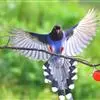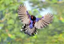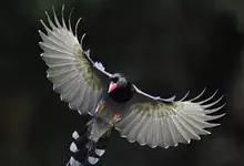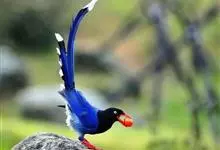 台湾蓝鹊:体长64至65厘米,翼展18至21厘米,尾长约40厘米,尾羽长占了总体长的三分之二。头、脸、颈、喉、胸都是黑色,黄色的眼珠包围黑色的瞳孔,鲜红色的鸟喙、双脚,…全部>>