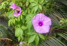 五爪金龙 Sweet),旋花科番薯属多年生缠绕草本植物。茎细长,有细棱;叶片为掌状;花冠紫红色、紫色或淡红色、偶有白色,漏斗状;蒴果近球形。花期5~12月。五爪金龙的叶子类似掌状,有5至7个裂痕,…全部>>