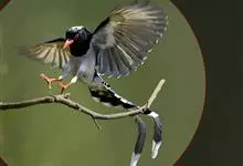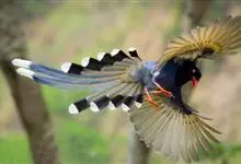 台湾蓝鹊:体长64至65厘米,翼展18至21厘米,尾长约40厘米,尾羽长占了总体长的三分之二。头、脸、颈、喉、胸都是黑色,黄色的眼珠包围黑色的瞳孔,鲜红色的鸟喙、双脚,…全部>>