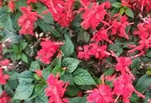 一串红,又称爆仗红、象牙红,为唇形科鼠尾草属植物。花序修长,色红鲜艳,花期又长,适应性强,为中国城市和园林中最普遍栽培的草本花卉。原产巴西、南美洲。喜温暖和阳光充足环境。不耐寒,耐半阴,忌霜雪和高温,…全部>>