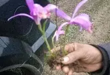 台湾独蒜兰:半附生或附生草本。假鳞茎压扁的卵形或卵球形,上端渐狭成明显的颈,绿色或暗紫色,顶端具1枚叶。叶在花期尚幼嫩,长成后椭圆形或倒披针形,纸质。花葶从无叶的老假鳞茎基部发出,直立,长7-16厘米,…全部>>