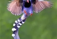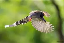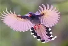 台湾蓝鹊:体长64至65厘米,翼展18至21厘米,尾长约40厘米,尾羽长占了总体长的三分之二。头、脸、颈、喉、胸都是黑色,黄色的眼珠包围黑色的瞳孔,鲜红色的鸟喙、双脚,…全部>>