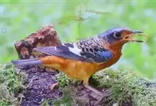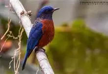 栗腹矶鸫是鸫科、矶鸫属小型鸟类,体长20-25厘米。雄鸟上体呈辉亮的钴蓝色,两翅黑褐色,喉蓝黑色,其余下体栗红色。雌鸟上体橄榄褐色,背具黑色鳞状斑,下体棕白色密杂以黑褐色横斑,黑白相衬,极为醒目,…全部>>