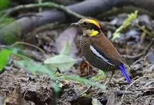 栗头八色鸫又叫锅巴雀,体长为24-26厘米,体重100-135克,是雀形目八色鸫科的鸟类。体型圆胖,尾短,腿长,常在森林底层或低植被中找食无脊椎动物。叫声简单哀婉。…全部>>