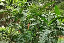 金嘴蝎尾蕉:芭蕉科,蝎尾蕉属多年生草本植物。株高可达6米。叶片长圆形,叶面绿色,叶背亮紫色;顶生花序,直立,薄被短柔毛;苞片绿色,开放时突露,花被片红色,顶端绿色,狭圆柱形,果三棱形,灰蓝色,有种子…全部>>
