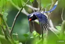 红嘴蓝鹊,别名山鹊、长尾鹊,是鸦科蓝鹊属的一种观赏性较强的大型鸣禽。该物种为体长54~65cm,头、颈、喉和胸黑色,头顶至后颈有一块白色至淡蓝白色或紫灰色块斑,其余上体紫蓝灰色或淡蓝灰褐色。尾长呈凸状,…全部>>