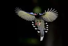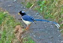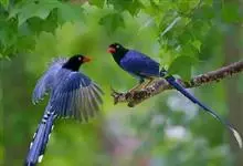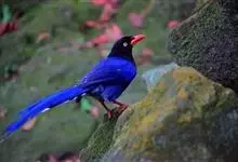 台湾蓝鹊:体长64至65厘米,翼展18至21厘米,尾长约40厘米,尾羽长占了总体长的三分之二。头、脸、颈、喉、胸都是黑色,黄色的眼珠包围黑色的瞳孔,鲜红色的鸟喙、双脚,…全部>>