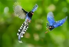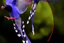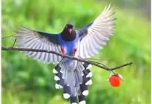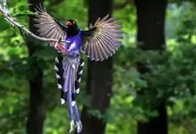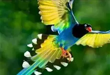 台湾蓝鹊:体长64至65厘米,翼展18至21厘米,尾长约40厘米,尾羽长占了总体长的三分之二。头、脸、颈、喉、胸都是黑色,黄色的眼珠包围黑色的瞳孔,鲜红色的鸟喙、双脚,…全部>>
