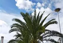 加那利海枣是棕榈科刺葵属植物,单干直立,自然高度可达18米,干径50-90厘米,幼时被以枯叶,老树则叶柄基部残存。具波状叶痕,羽状复叶,顶生丛出。雌雄异株,肉穗花序自叶间抽出,长可达2米。浆果,…全部>>