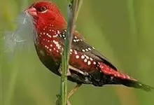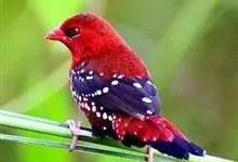 红梅花雀小型鸟类,体长9-10厘米。雄鸟通体朱红色,背、肩、胸等满布白色小斑点,两翅和尾黑褐色均具白色端斑,嘴红色,脚蜡黄色。雌鸟上体淡褐色或赭褐色,翅上中覆羽、大覆羽和内侧飞羽末端具白色斑点,…全部>>