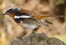 山麻雀:小型鸟类,体长13-15厘米。雄鸟上体栗红色,背中央具黑色纵纹,头棕色或淡灰白色,颏、喉黑色,其余下体灰白色或灰白色沾黄。雌鸟上体褐色具宽阔的皮黄白色眉纹,颏、喉无黑色。…全部>>