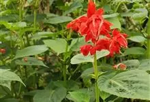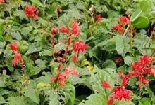一串红,又称爆仗红、象牙红,为唇形科鼠尾草属植物。花序修长,色红鲜艳,花期又长,适应性强,为中国城市和园林中最普遍栽培的草本花卉。原产巴西、南美洲。喜温暖和阳光充足环境。不耐寒,耐半阴,忌霜雪和高温,…全部>>