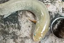 海鳗是鳗鲡目海鳗科海鳗属鱼类。海鳗身体延长,头呈锥状,吻尖而突出,眼椭圆形;躯干部近圆柱状,身体背部及体侧深褐色或银灰色,腹部乳白色;体表无鳞,皮肤光滑;侧线孔明显;背鳍、臀鳍、尾鳍发达并相连,…全部>>