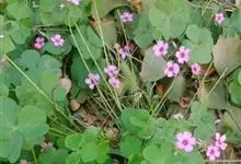 红花酢浆草别名铜锤草、大酸味草、幸运草等,是酢浆草科酢浆草属的多年生直立草本植物。其无地上茎,地下部有球状鳞茎;叶基生,叶柄长5~30cm或更长,被毛;花瓣5,倒心形,淡紫色至紫红色,基部颜色较深。…全部>>