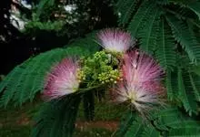 合欢,又名马缨花、绒花树、夜合合等,为豆科合欢属的一种落叶乔木。合欢的树高可达16米,人工特别养护的可达30米,树冠开展;二回羽状复叶,…全部>>