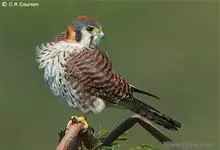 红隼:是隼科、隼属的小型猛禽之一。体重173-335克,体长305-360毫米。翅狭长而尖,尾亦较长,外形和共同爪隼非常相似。雄鸟头蓝灰色,背和翅上覆羽砖红色,具三角形黑斑;腰、尾上覆羽和尾羽蓝灰色,…全部>>
