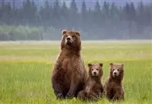 棕熊是熊科熊属哺乳动物。体形健硕,肩背隆起,身后长有一条短尾。毛色多为棕褐色或棕黄色;老年呈银灰色;幼年为棕黑色。野生条件下寿命为20—30年。棕熊分布广泛,主要分布在欧亚大陆和北美,…全部>>