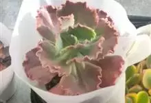 女王花笠,又名扇贝石莲花、女王花舞笠,是景天科拟石莲花属的多肉植物。由美国加利福尼亚州的育种师Dick Wright于1964年培育。特征是呈大波浪状褶皱的红色叶缘和气质高贵的粉紫色调。…全部>>