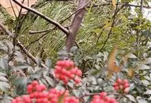 南天竹,小檗科南天竹属常绿小灌木植物,茎干较高,表面光滑无毛,红色;叶较小,叶片薄,呈椭圆形且为深绿色,无毛;花朵较小,白色带有芳香,呈四角形;果柄短且果实呈球形,橙红色;种子扁圆形。花期3-6月,…全部>>
