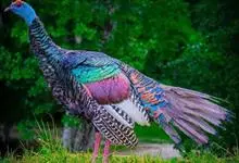 火鸡是鸡形目吐绶鸡科吐绶鸡属的鸟类。外貌独特,体躯高大、雄壮;头、颈裸露,鼻孔上部长有肉锥,头顶生皮瘤,可伸缩自如;皮瘤一般为浅蓝色,激动时肉锥变小,皮瘤变成赤红色;颈部也生有珊瑚状的皮瘤,…全部>>