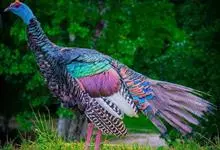 火鸡是鸡形目吐绶鸡科吐绶鸡属的鸟类。外貌独特,体躯高大、雄壮;头、颈裸露,鼻孔上部长有肉锥,头顶生皮瘤,可伸缩自如;皮瘤一般为浅蓝色,激动时肉锥变小,皮瘤变成赤红色;颈部也生有珊瑚状的皮瘤,…全部>>