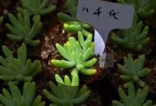 八千代是景天科,景天属多年生肉质植物。植株呈小灌木状,高可达30厘米,多分枝。叶片松散地簇生于分枝顶部,叶肉质圆柱形,表面平整稍向上内弯,顶端圆钝,…全部>>