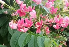 使君子 Jongkind)是使君子科、使君子属攀援灌木,叶对生,椭圆形,两面均被灰白色柔毛。穗状花序,倒挂下垂。花期夏秋。果有五棱,熟时黑色,种子白色。分布于印度、缅甸、菲律宾和中国。喜温润,深根性,…全部>>