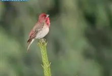 普通朱雀是雀形目雀科朱雀属鸟类,又名红朱雀、马料、青麻料。雄鸟上体红色,下体淡红色;头部、喉部、胸部及腰部亮红色;背部褐色染红色;两翼及尾黑褐色,羽缘染红色。雌鸟上体橄榄褐色,下体近白色,…全部>>