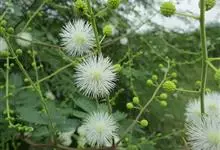 光荚含羞草 Kuntze)是豆科,含羞草属落叶灌木,高可达6米;小枝无刺,二回羽状复叶,叶轴无刺,被短柔毛,小叶片线形,革质,先端具小尖头,中脉略偏上缘。头状花序球形;花白色;花萼极小;花瓣长圆形,…全部>>