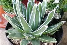 皇后龙舌兰是天门冬科、龙舌兰属多年生草本多浆植物。无主茎,叶丛生,莲座状,株幅40厘米。叶较多,先端较细,三棱形,腹面扁平,背面圆形呈微龙骨凸起,长10-30厘米,宽2.5-7.5厘米,厚肉质硬,…全部>>