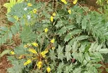 十大功劳 Fedde),小檗科十大功劳属常绿灌木植物。叶子较大且较多,呈椭圆形,绿色,表面光滑无毛,叶柄较长;花朵较小,呈多边形,黄色,花瓣对称分布,表面有绒毛;果实呈圆形,褐色,…全部>>